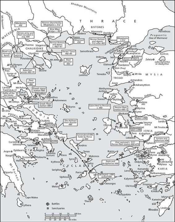 Map 5.1 Persian Campaigns in the Aegean during the Reigns of Darius I and Xerxes. After Cambridge History of Iran, Vol. 2, 1985, map 13.