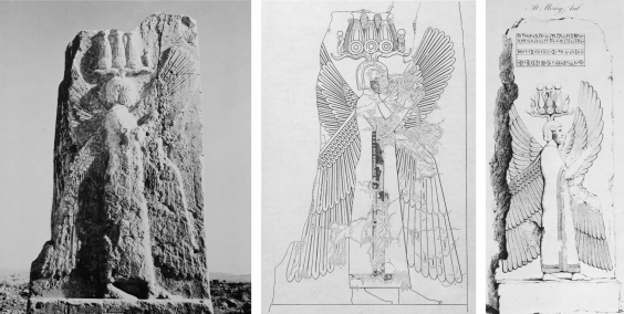 Figures 8.1a-c Winged Guardian Genius, Pasargadae. Figures 8a and 8b courtesy of David Stronach. Figure 8c from Sir Robert Ker Porter, Travels in Georgia, Persia, Armenia, Ancient Babylonia, Vol. I, 1821, opposite p. 492.