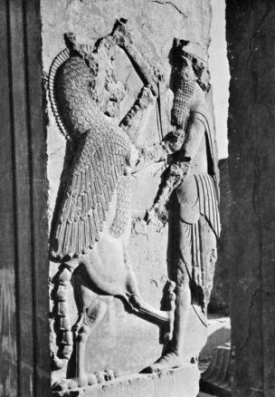 Figure 8.4 Darius as Royal Hero, Persepolis, Palace of Darius. Courtesy of the Oriental Institute of the University of Chicago.