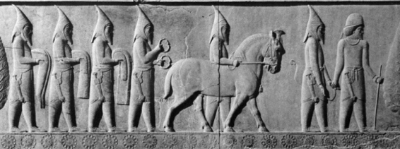 Figure 8.6 Scythians in Procession, Apadana, East Stairway, Persepolis. Courtesy of the Oriental Institute of the University of Chicago.