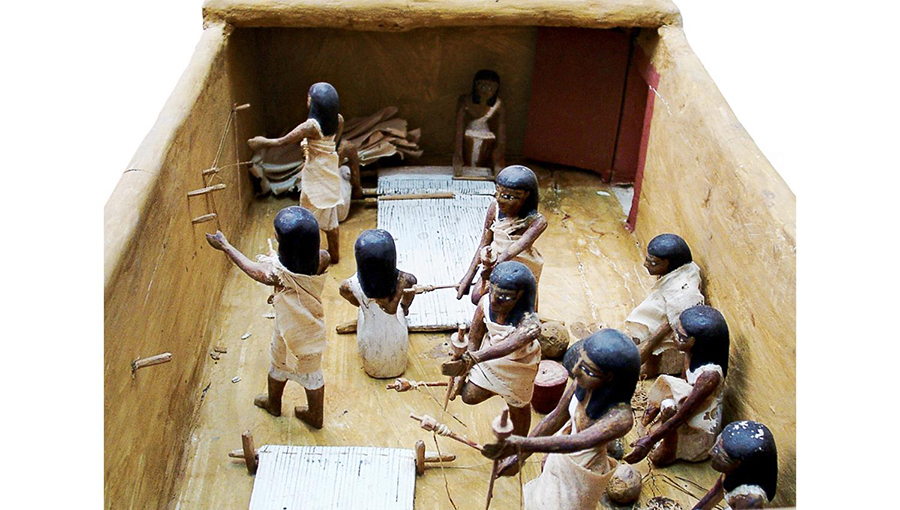Wooden models found in Middle Kingdom tombs can provide important three-dimensional information on the organization of different crafts, like this wonderful example from the tomb of Meketre showing the process of linen production by spinners and weavers with their looms. Steven Snape.
