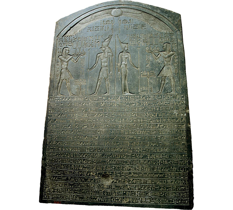 This stela was set up in the city of Buto by Ptolemy I in 316 BC, when he was Satrap (Governor) of Egypt for Alexander’s son, Alexander IV. Its purpose was to re-establish order – Ptolemy confirms the claim of the temple of the goddess Wadjet in Buto to an area of land in the Delta, and claims that he returned to their temples those statues of the gods that had been seized by the Persians. But all was not traditional: