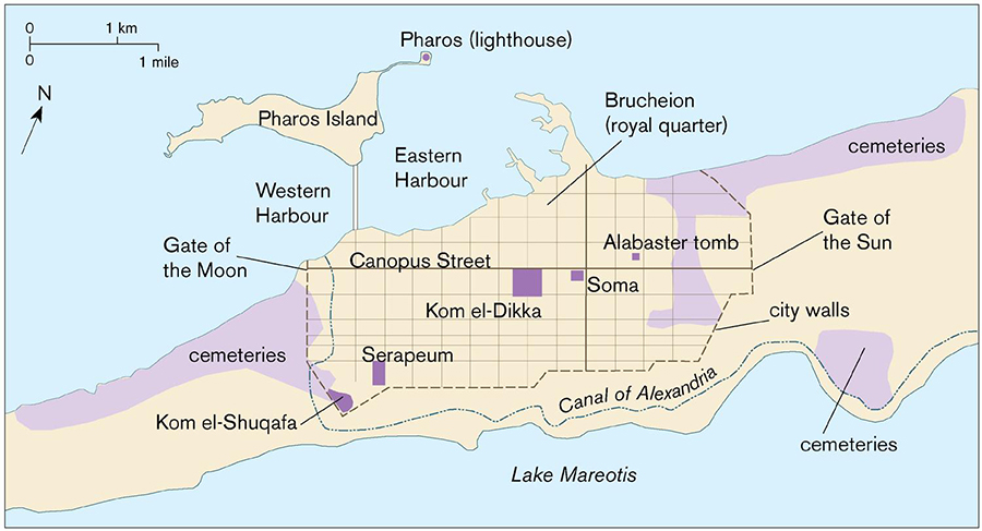 Plan of Alexandria showing some of the major features of the city in the Ptolemaic and Roman Periods. Steven Snape.