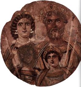 (Above) A roundel bearing portraits of the Emperor Septimius Severus, his wife Julia Domna, and two sons Caracalla and Gela. Severus rose to power through civil war and openly acknowledged that his position was based upon military support. As part of the propaganda programme designed to maintain the loyalty of the soldiers, his wife was known as the 'Mother of the Camp’.
