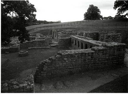 (Above) The bath house at Chesters fort on Hadrians Wall is sited near the river. The danger of fire ensured that the baths in cramped auxiliary forts were built outside the walls.