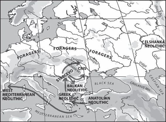 local foragers. But it really is of no consequence—no one seriously believes that the East Carpathian Criş people were genetically “pure” anyway. The important point is that the people who lived in Criş villages in the East Carpathians were culturally Criş in almost all the material signs of their identity, and given how they got there, almost certainly in nonmaterial signs like language as well. The Criş culture came, without any doubt, from the Danube valley.