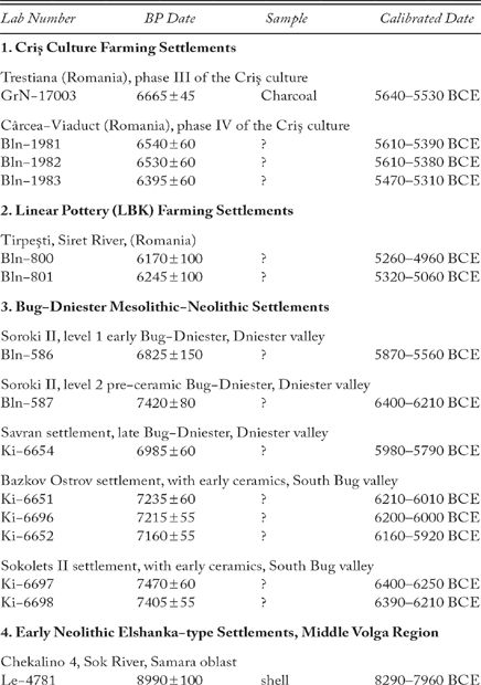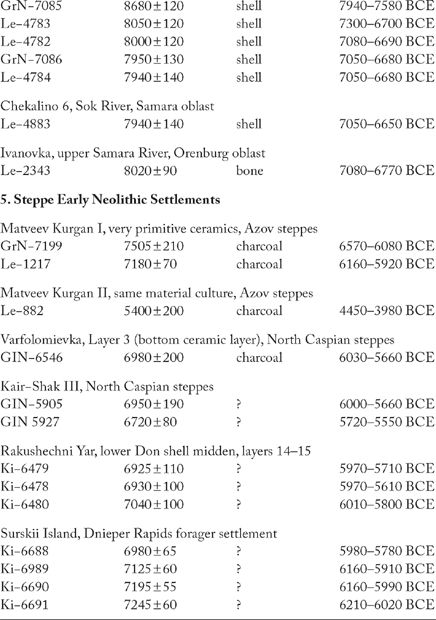 TABLE 8.1 Radiocarbon Dates for the Late Mesolithic and Early Neolithic of the Pontic- Caspian Region.