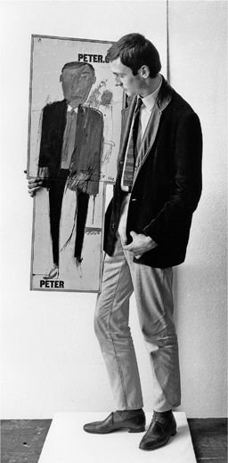 Kasmin’s attempts to sell Hockney as a potential new star to Fischer, however, were a failure. Like most London galleries, the New London Gallery had a room for showing clients pictures that were not hanging up, complete with floor-to-ceiling grey velvet drapes on runners, an armchair, a sofa and an easel that could be lit from a spotlight. It was a style that might have been suited to showing off a van Gogh portrait or a Cezanne watercolour but for contemporary work it was the most inappropriate setting imaginable. Kasmin, however, persuaded Hockney to bring in some more of his pictures, and stored them behind the curtains. “Some were particularly scruffy,” he recalls, “painted on the cheapest canvas with ordinary white household paint, often unfinished, sometimes shaped with bits tacked on. Being so enthusiastic about them, I would have them out quite often, and Mr. Fischer would come in and say, ‘What is all this rubbish? I said you could have it here, but you were to keep it behind the curtains. Get rid of all this stuff!’ ”12 Apart from Kasmin, the only person at the Marlborough who liked the pictures was a fellow employee, James Kirkman, who would later buy several for only a few pounds.