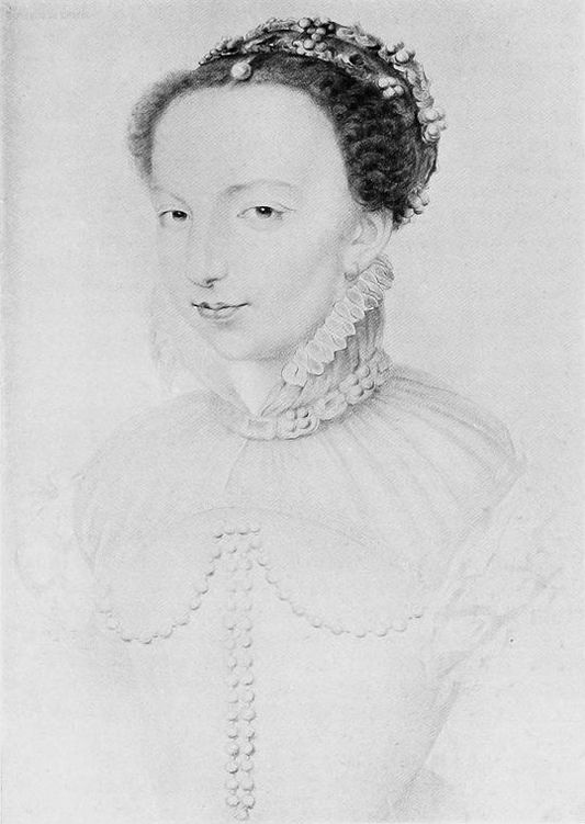 Among these jewels were a set of immense pear-shaped pearls, which contemporary writers declare to have been of fabulous origin and to have been worth a kingdom; but as a matter of fact, they had been purchased from a Lyons merchant, and were only valued at 900 crowns."02 These pearls were, many years later, given by Catherine to her daughter-in-law, Mary Stuart, "whom I have seen wearing them," writes Brantôme. Reumont says that there was, in the Galerie d'Orléans of the Palais-Royal, at the time of the Revolution of 1848, a portrait of Mary Stuart, as the young wife of François II, with richly curling hair, a high lace ruff, and Catherine's pearls around her neck and on her bosom. This portrait is no doubt identical with one which is now at Chantilly; but, according to so high an authority as M. Bouchot, the lady therein represented is not Mary Stuart at all, but the Princesse de Conti.