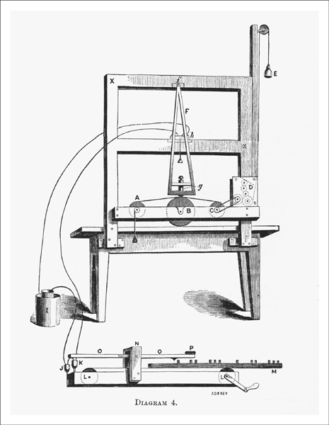 Morse’s original telegraph apparatus (ca. 1836) (Samuel I. Prime, The Life of Samuel F. B. Morse, LL.D. [1875])