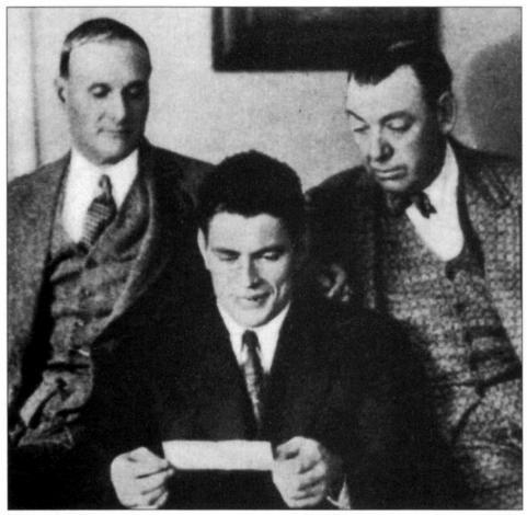 Left • Heavyeight champion Gene Tunney (center) with his manager Billy Gibson (left) and legendary boxing promoter Tex Rickard. Rothstein won $500,000 on the first Dempsey-Tunney fight. Did he and Abe Attell plot to make it a "sure thing"?