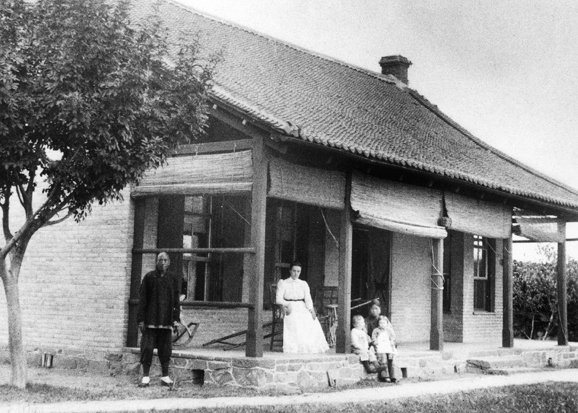 The Luces occupied this home in Tengchow through the first years of Harry’s life. Elisabeth Luce sits on the porch with Harry, Emmavail, and a Chinese nurse. They shared the house with another missionary family.