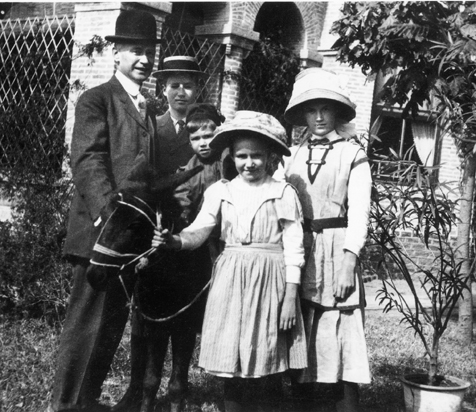 Henry W. Luce and his four children posed for this portrait in the family’s second home in Wei Hsien, approximately 1912. From left to right: Rev. Luce, Harry, Sheldon, Elisabeth, and Emmavail.