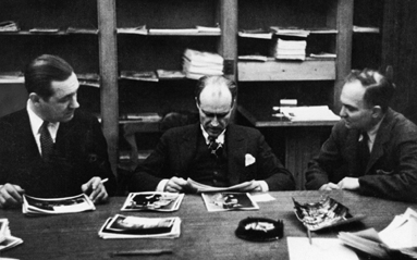 Luce looks over possible photographs for Life, flanked on the left by John Shaw Billings, the first managing editor of Life, and on the right by Daniel Longwell, the most energetic champion of the new magazine and eventually Billings’s successor as managing editor.