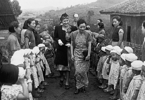 Harry and Clare walk with Madame Chiang Kai-shek through a reverent group of Chinese near Chungking, in a 1941 visit. The crowd was organized by Kuomintang leaders to impress Luce, whose influence was important to the regime. Their hosts were not disappointed by their treatment in Luce’s magazines.