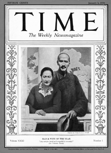 One of the many covers Time devoted to Chiang Kai-shek. In this one, he is accompanied by Madame Chiang, as “Man & Woman of the Year” in 1938.