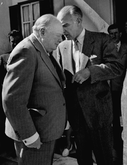Luce took advantage of his connection to the American embassy in Rome by traveling widely in Europe and hosting distinguished visitors. He is shown here escorting Winston Churchill in a 1955 visit.