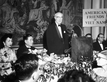 Luce was an ardent supporter of the Vietnam War, and in the 1950s a great admirer of Ngo Dinh Diem, president of South Vietnam. The American Friends of Vietnam, modeled in some ways on earlier organizations supporting Nationalist China, attracted the support of many prominent figures. Luce presides here in 1959 over a meeting of the organization, with Diem seated next to him, waiting to speak.