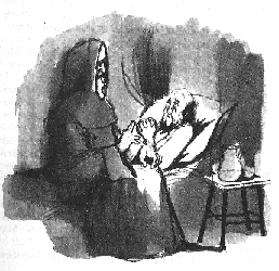 —¿Qué haremos de éste? —decía el uno al otro—. Estamos por su causa en una situación pésima porque echarlo fuera de nuestra casa tan enfermo nos traería gran tacha y sería signo manifiesto de poco juicio al ver la gente que primero lo habíamos recibido y después hecho servir y medicar tan solícitamente para ahora, sin que haya podido hacer nada que pudiera ofendernos, echarlo fuera de nuestra casa tan súbitamente, y enfermo de muerte. Por otra parte, ha sido un hombre tan malvado que no querrá confesarse ni recibir ningún sacramento de la Iglesia y, muriendo sin confesión, ninguna iglesia querrá recibir su cuerpo y será arrojado a los fosos como un perro. Y si por el contrario se confiesa, sus pecados son tantos y tan horribles que no los habrá semejantes y ningún fraile o cura querrá ni podrá absolverle; por lo que, no absuelto, será también arrojado a los fosos como un perro. Y si esto sucede, el pueblo de esta tierra, tanto por nuestro oficio (que les parece inicuo y al que todo el tiempo pasan maldiciendo) como por el deseo que tiene de robarnos, viéndolo, se amotinará y gritará: «Estos perros lombardos a los que la iglesia no quiere recibir no pueden sufrirse más», y correrán en busca de nuestras arcas y tal vez no solamente nos roben los haberes sino que pueden quitarnos también la vida; por lo que de cualquiera guisa estamos mal si éste se muere.