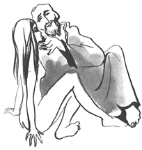Estas palabras gustaron mucho al santo varón y le parecieron señal de una mente bien dispuesta; y luego que al seor Ciappelletto hubo alabado mucho esta práctica, empezó a preguntarle si había alguna vez pecado lujuriosamente con alguna mujer. A lo que seor Ciappelletto respondió suspirando: