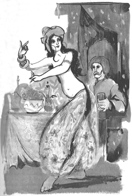 Después de ésta, otras muchas se cantaron y se bailaron muchas danzas y se tocaron distintas músicas; pero juzgando la reina que era tiempo de tener que irse a descansar, con las antorchas por delante cada uno a su cámara se fueron, y durante los dos días siguientes atendiendo a aquellas cosa que la reina había hablado, esperando con deseo la llegada del domingo.