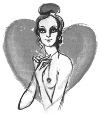 Alessandro, puesta la mano sobre el pecho del abad, encontró dos teticas redondas y firmes y delicadas, no de otro modo que si hubieran sido de marfil; encontradas las cuales y conocido en seguida que éste era mujer, sin esperar otra invitación, abrazándola prontamente la quería besar, cuando ella le dijo: