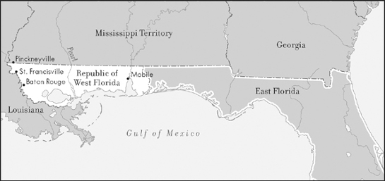 The details were actually somewhat different. Mr. Smith was John Smith, a resident of Ohio—in fact, a U.S. senator from Ohio. He owned land in West Florida, which he paid the Kemper brothers to manage. Smith’s absentee ownership was in violation of Spanish policy, but Spanish policy was laxly enforced (especially for a U.S. senator).2 The debt mentioned in the news account resulted from Smith’s providing the Kempers with dry goods that they were to sell to local residents. When the business failed, Reuben Kemper was deeply in debt to Smith, but he did not flee to West Florida, since that is where he lived and where the litigation took place. The judgment in favor of Smith resulted in efforts by West Florida authorities to evict the Kempers from Smith’s land. These efforts became increasingly violent confrontations that, not unlike a barroom brawl, began to involve additional people.