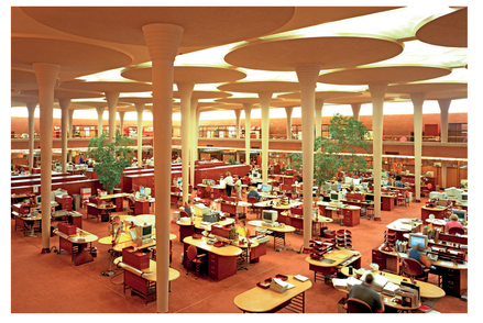 Fig 11.2 The top-lit interior of the Johnson Wax Company building designed by Frank Lloyd Wright, 1939.