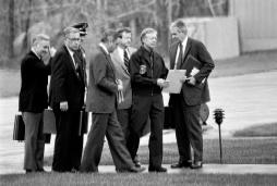 In November 1979, Director Stansfield Turner brings up the rear as President Carter calls his top military and diplomatic advisers to Camp David to assess the plight of the American hostages in Iran.