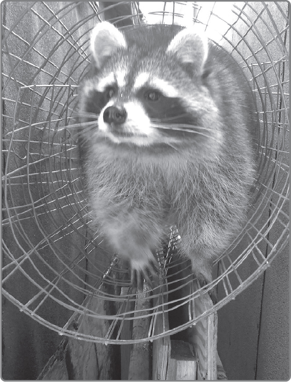 I was a first-time rehabber then, and as I said, now I look back and realize I could have and should have done things differently. But live and learn! Skeeter became my pal, and our attachment went both ways. I did respect his wildness (or his attempts at it) by going hands-off and no longer handling him at all, for both our sakes. I never again tried petting him or holding him—heaven forbid! More than one rehabber has suffered the pain of numerous stitches as payment for laying hands on an orphan raccoon that has entered puberty. I was never any good with pain, so I kept my hands strictly to myself.