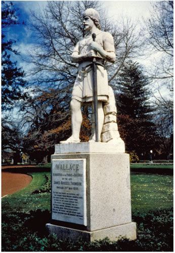 20 Wallace statue, David Park, Baltimore, and the Caledonian Society, 24 August 1997. The statue is a copy of the D.W. Stevenson statue erected on the façade of the National Wallace Monument in Stirling, 1887. The Baltimore statue, gifted by Scots-born Wallace Spence, was unveiled on St Andrew’s Day 1893. Annual commemorations in honour of Wallace take place here. Stirling Smith Art Gallery and Museum