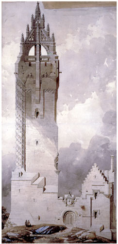 21 Architect’s drawing for the National Wallace Monument, 1859, entered in the competition under the title ‘Nothing on Earth remains bot faime’ by J.T. Rochead (1814–1878). Stirling Smith Art Gallery and Museum
