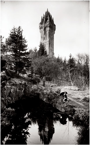 22 Wallace Monument. The stone for the Monument was quarried on site from the Abbey Craig. The water which filled the quarry was later drained. Photograph by Sergeant McKenzie, c.1880. Stirling Smith Art Gallery and Museum