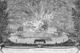 Figure 4.2 Print by Israel Silvestre of firework display during “Les plaisirs de l’ile enchantée. Troisième journée,” 1664. © Trustees of the British Museum, 1889, 1218.139.