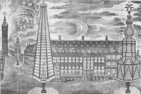Figure 4.4 Illumination of the Hôtel de Ville, Ghent, 1717. Engraving, 1719. Österreichische Nationalbibliothek, Bildarchiv, Vienna, 462.224-A/B.