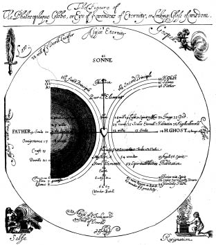 Figure 3.4 Representing light and darkness in Jacob Böhme’s thought. Engraving from Jacob Böhme, XL. questions concerning the soule (London, 1647), pp. 22–23. University of Chicago Library, Special Collections Research Center.