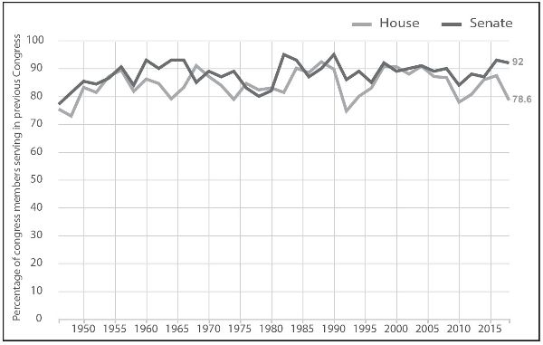 Fig. 5. Continuity of Senate and House membership, 1946–2018
