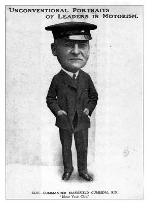 Cumming, whose original name was Mansfield George Smith, came from a moderately prosperous landed and professional family (his father was a distinguished engineer) and entered the navy after going to the Royal Naval College, Dartmouth, at the age of twelve in 1872. He enjoyed an apparently successful, but not especially outstanding, career at sea and in various shore appointments (including a spell at the Royal Naval College Greenwich at the same time as the future King George V), before retiring in December 1885 ‘on Active Half Pay’ due to unspecified ill-health. Over the next decade or so he worked as private secretary to the Earl of Meath, serving for a time as his agent in Ireland. During these years he married twice: first in 1885 to a South African, Dora Cloete, who died in 1887, and secondly to May Cumming (when he adopted her family name), an independently wealthy woman whose family had estates in Morayshire, Scotland. In April 1898 he returned to the navy to ‘superintend the working of the Boom defence at Southampton’. Cumming was a practical man, much enthused by the latest mechanical devices. A keen pioneer motorist, and a hair-raisingly fast driver, he joined the Royal Automobile Club in 1902, and three years later was a founder member (and first Rear Commodore) of its offshoot the Motor Yacht Club (also ‘Royal’ from 1910). In 1906 he was a founder member of the Royal Aero Club, acquiring a pilot’s licence at the age of fifty-four in November 1913.7