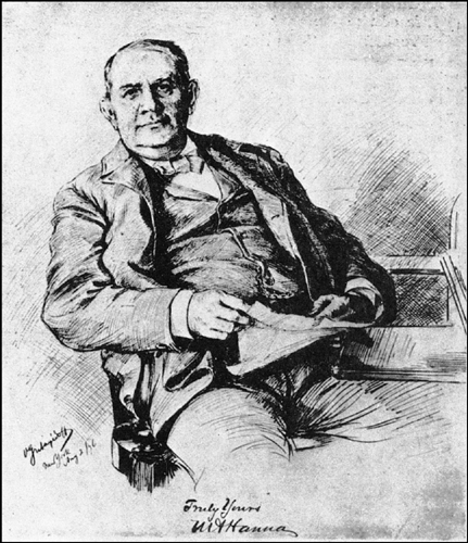 Mark Hanna, sketched the day Theodore Roosevelt went boating with Mrs. Bellamy Storer. (Illustration 21.1)
