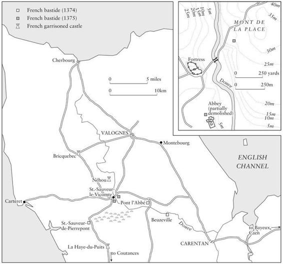 The main reason why it took so long was that Charles V ignored the advice which he had received and tried to retake the fortress with insufficient resources. Jean de Vienne arrived in the Cotentin in about the middle of August 1374 with no more than a few hundred men. He set up his headquarters in the village of Pont-l’Abbé by the River Douve, about five miles east of Saint-Sauveur. Workmen began to construct a large bastide there under the protection of his troops. Another was built at Beuzeville a little further east, whose ruins can still be seen in the fields; and a third at Saint-Sauveur-de-Pierrepont, some five miles south of the fortress. Garrisons were put into the principal seigneurial castles of the region. The Castilian galleys, which arrived in the Channel in July, were detailed to lie off the Cotentin to intercept any attempt by the English to reinforce Saint-Sauveur by sea. This kind of loose siege was a technique often employed to limit the depredations of an enemy garrison and obstruct their foraging and pillaging expeditions. But it was not likely to recover the fortress in the face of determined opposition from its garrison. In the event it did not even significantly restrict their operations.11
