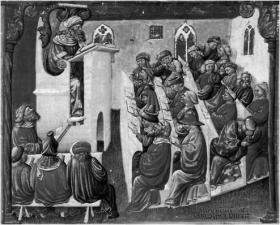 4. A fourteenth-century manuscript illumination of a master lecturing his students