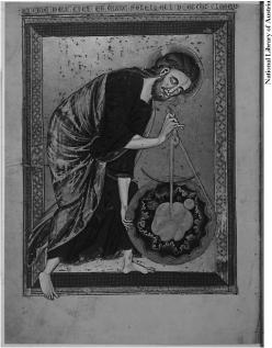 5. A manuscript illumination from a thirteenth-century French Bible of God designing the world
