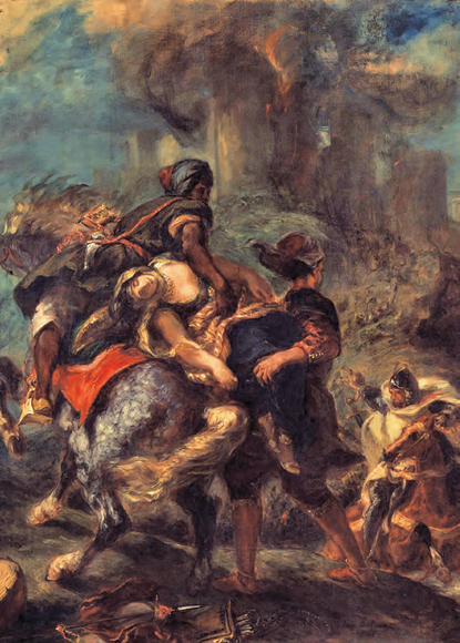 A scene from Sir Walter Scott’s novel Ivanhoe is illustrated in The Abduction of Rebecca, an 1846 painting by Eugène Delacroix. Saracen slaves are kidnapping the novel’s heroine.