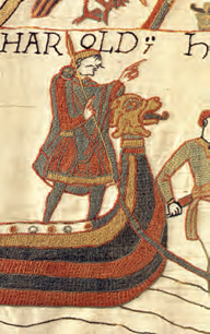 Depicted here in the Bayeux Tapestry, future king of England Harold Godwineson crosses the English Channel on a diplomatic mission to Normandy.