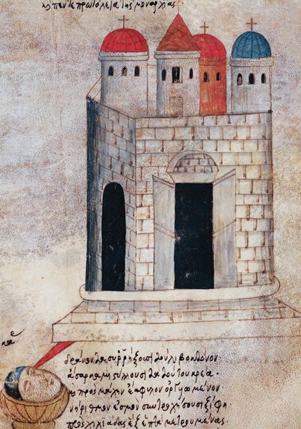 A fifteenth-century depiction shows the Church of the Holy Sepulchre in Jerusalem. The Holy Sepulchre, enclosed within the Edicule (small house) had been the destination of many pilgrims and crusaders over the previous four centuries.