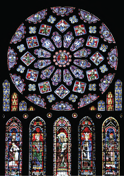 The spectacular stained glass rose windows of Chartres Cathedral combine the stories and prophecies of the Old Testament with aspects of the New Testament.
