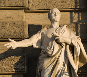 Cicero, seen here in the façade of Rome’s Palazzo di Giustizia (Palace of Justice), defined the parameters of a just war, often waged against barbarians.