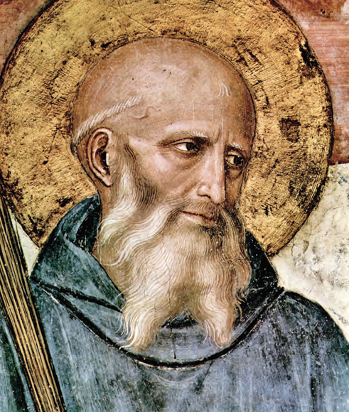 This fifteenth-century fresco shows St. Benedict (died c.550), sometimes portrayed as a warrior fighting the Vikings, in the militant style of some Middle Ages Christian imagery.