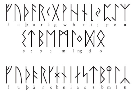 Above: The older futhark, consisting of 24 runes, was in use for about 700 years after the birth of Christ. Below: A rationalized form using only 16 runes was in use by the end of the eighth century.