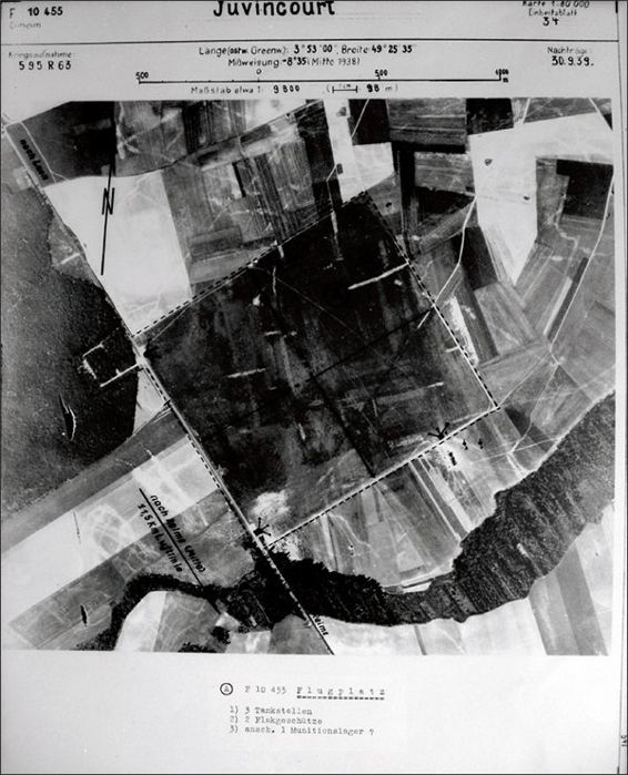 The field at Juvincourt, photographed by the Luftwaffe on 30 September 1939. (NARA)